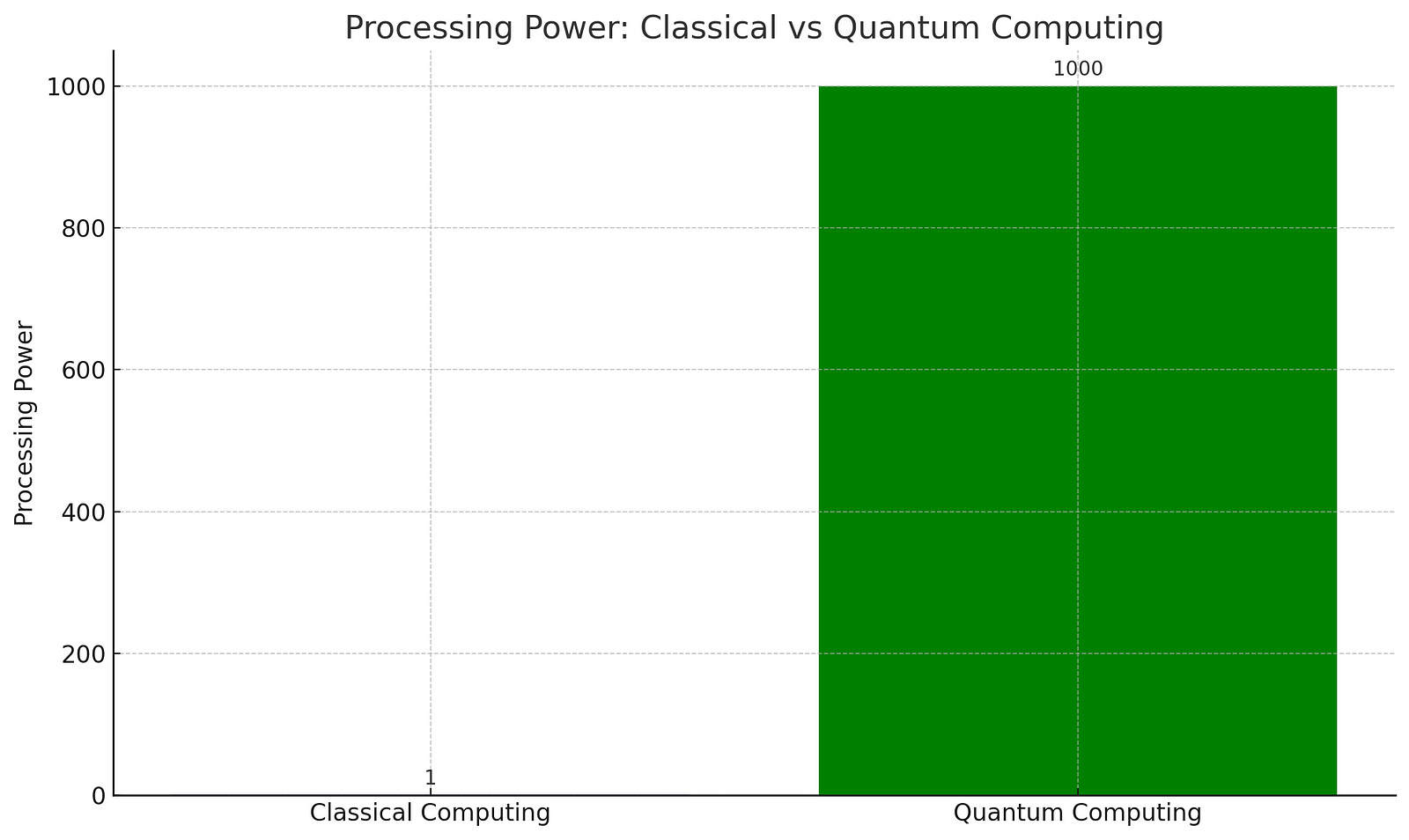 Let’s visualize below how quantum computing’s processing power stacks up against classical computing to get a clearer picture of the quantum advantage.